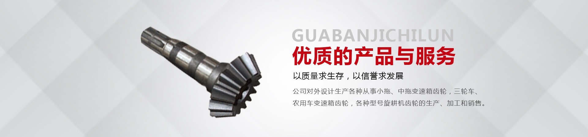 本廠位于省會東南60公里的全國重點(diǎn)鎮(zhèn)——大陸村鎮(zhèn)。本廠在市場內(nèi)設(shè)有銷售公司,經(jīng)銷工程機(jī)械;農(nóng)用拖拉機(jī);農(nóng)機(jī)具的整機(jī)和全車配件。市場緊靠308國道,距青銀高速寧晉路口14公里,交通十分方便。主要從事小拖、中拖變速箱齒輪,三輪車、農(nóng)用車變速箱齒輪,各種型號旋耕機(jī)齒輪、收獲機(jī)械變速箱齒輪的生產(chǎn)、加工和銷售。同時(shí)加工定做各種直齒輪,傘齒輪,斜齒輪,鏈輪,齒輪軸等機(jī)械產(chǎn)品。廠內(nèi)檢測手段齊全。十幾年來與河北、北京、山東、安徽、河南、吉林、陜西、山西、寧夏、黑龍江、遼寧等省市的企業(yè)建立了穩(wěn)固的業(yè)務(wù)關(guān)系。產(chǎn)品質(zhì)量穩(wěn)定、價(jià)格合理、供貨及時(shí)。